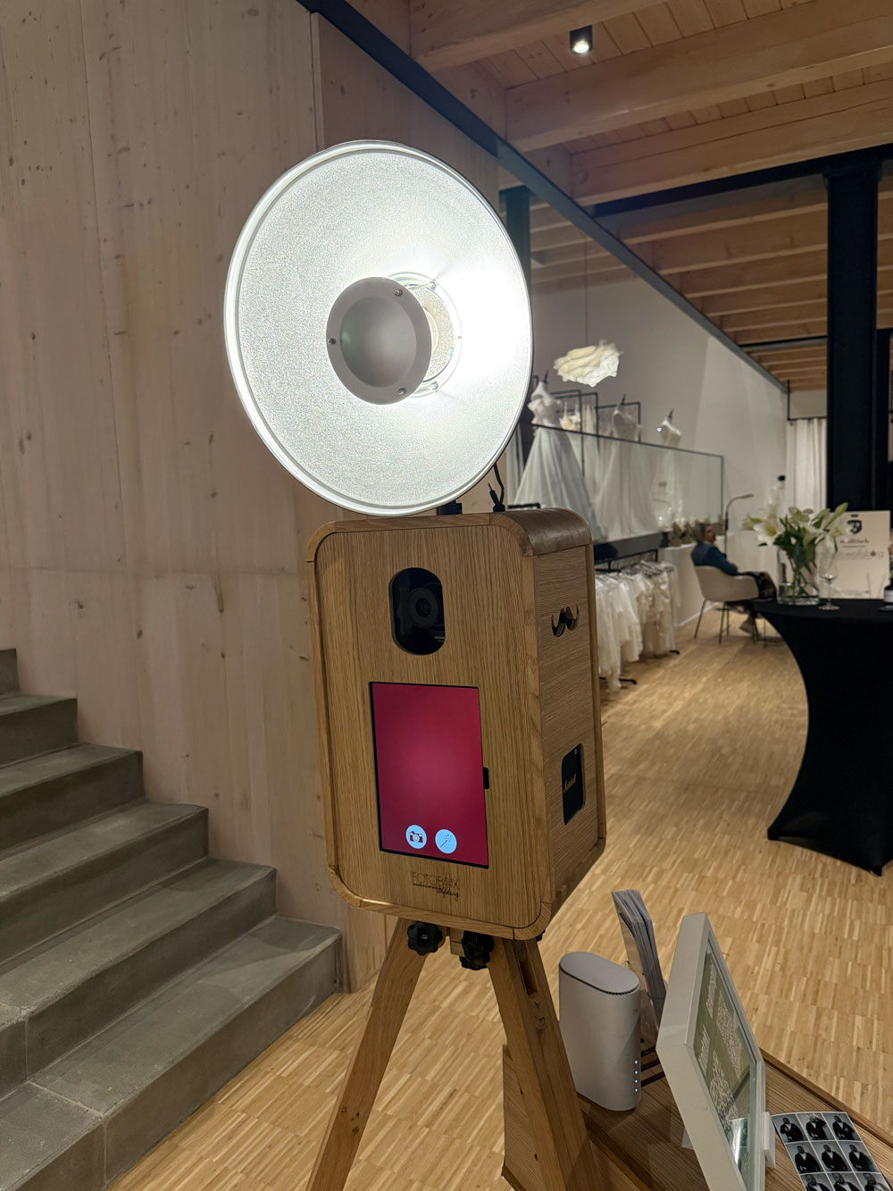Die Fotobox Deluxe vereint modernste Technologie mit hochwertigen Materialien und elegantem Design. Handgefertigt aus edlem Eichenholz setzt sie neue Maßstäbe für anspruchsvolle Events.